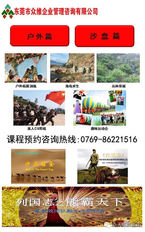 2、专业品牌:在基础设施、现场器材、现场服务、教官素质四大专业性保证拓展效果;